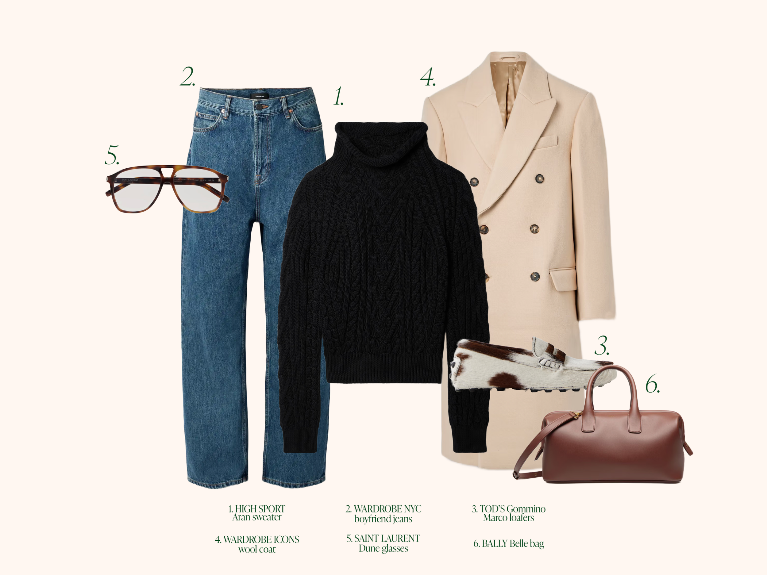 Sometimes there’s nothing better on weekends than to walk around town with no definite plans. You might stop for a coffee, a drink, the park, some lunch or a bit of shopping. Comfortable and chic, we love this pairing of the High Sport sweater and Wardrobe NYC jeans. Throw on the wool coat from Wardrobe NYC and it’s warm enough for the whole day. Paired with Bally’s Belle bag and these glasses from Saint Laurent, and our favourite pair of TOD’S loafers.